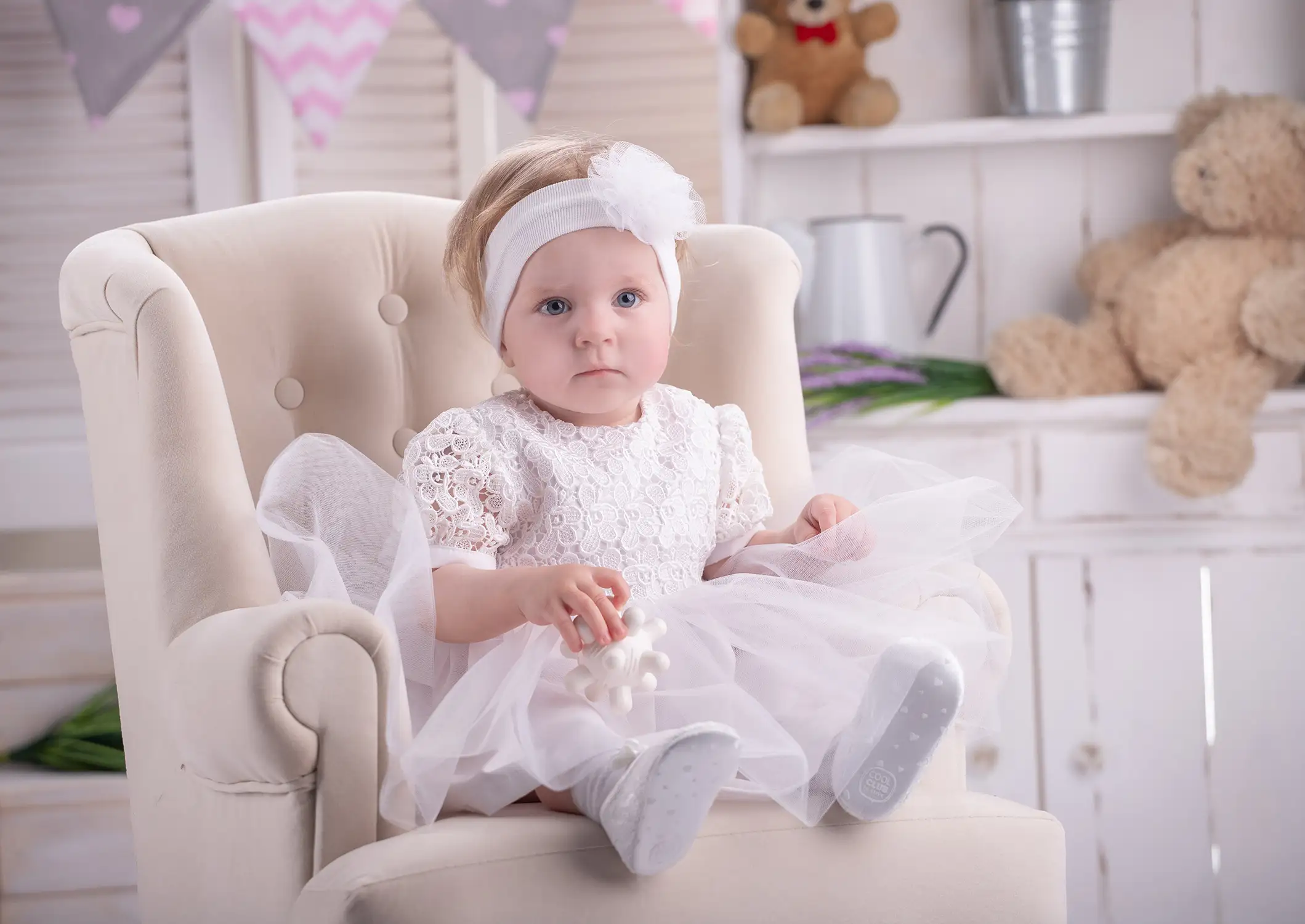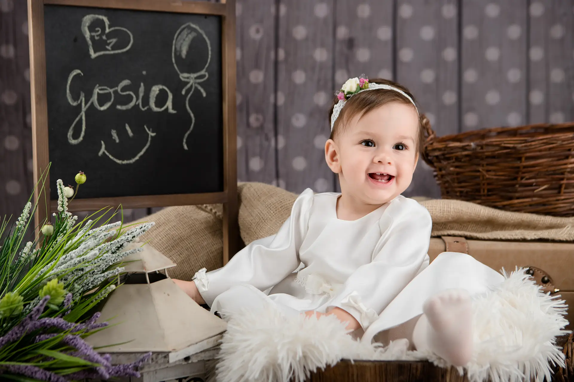 Ubranie na zmianę: Nie musicie przywozić dziecka od razu w stroju wyjściowym. Maluszka możecie spokojnie przebrać w moim studiu, co zapobiegnie pognieceniu lub pobrudzeniu sukienki czy garnituru podczas drogi.