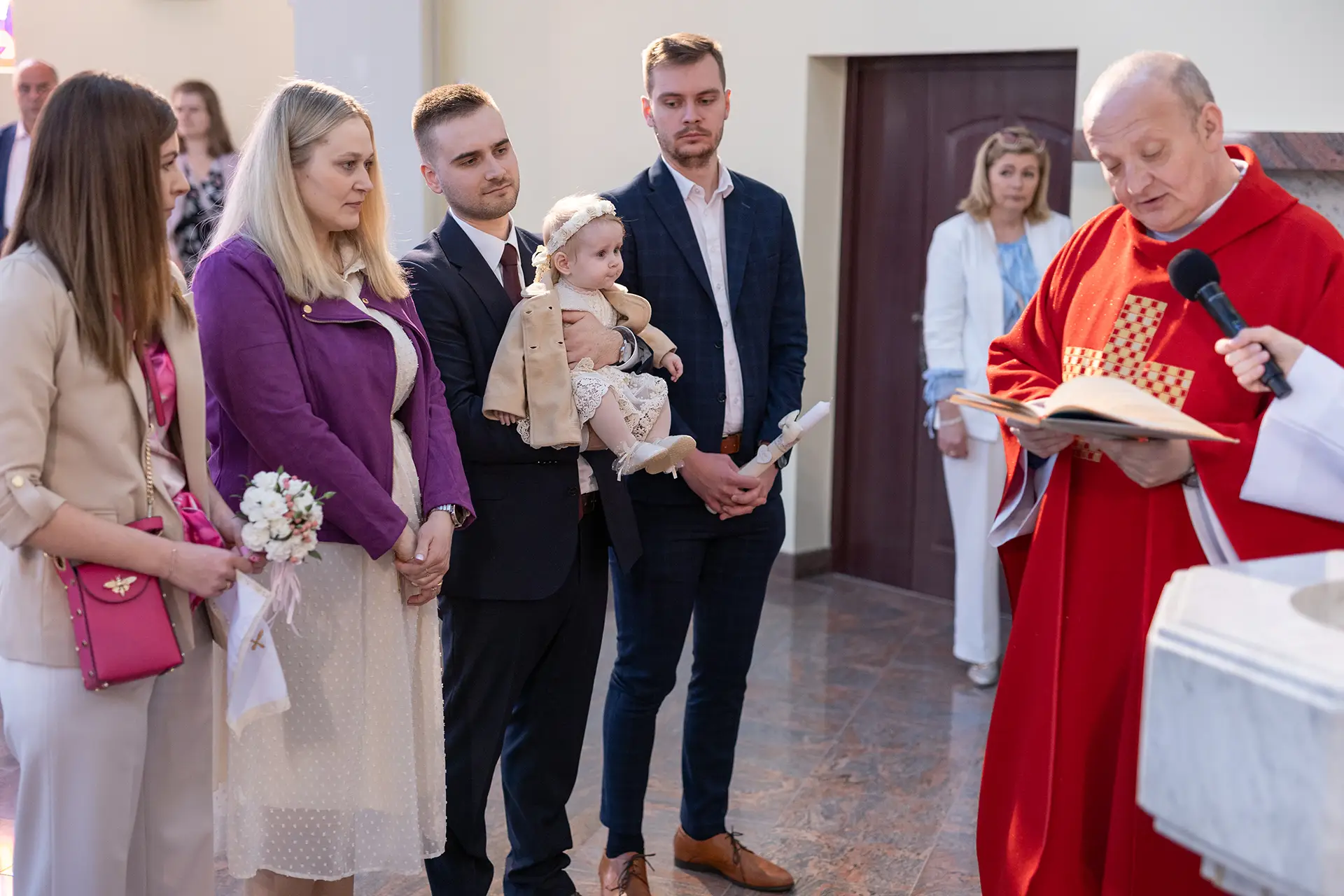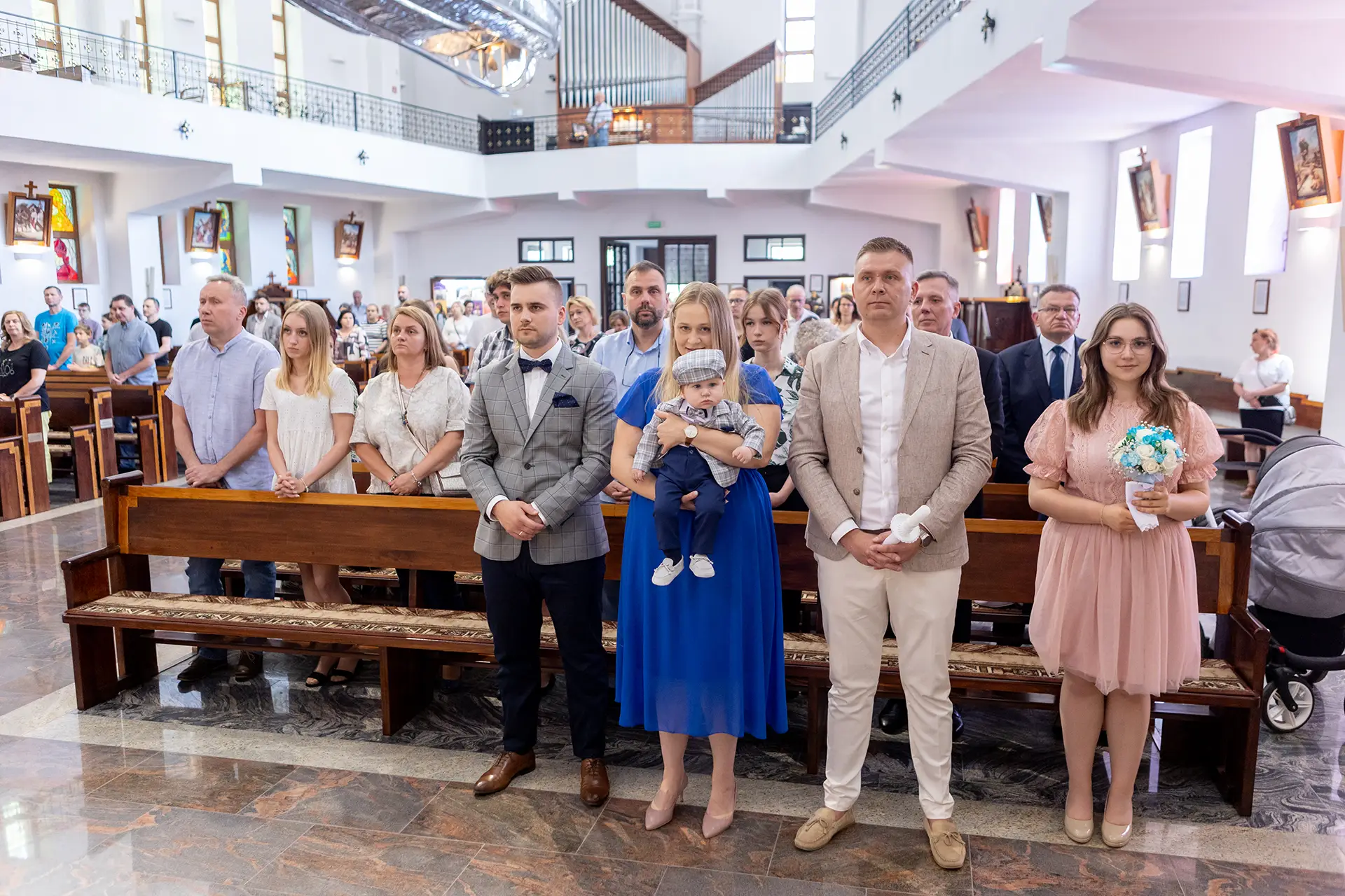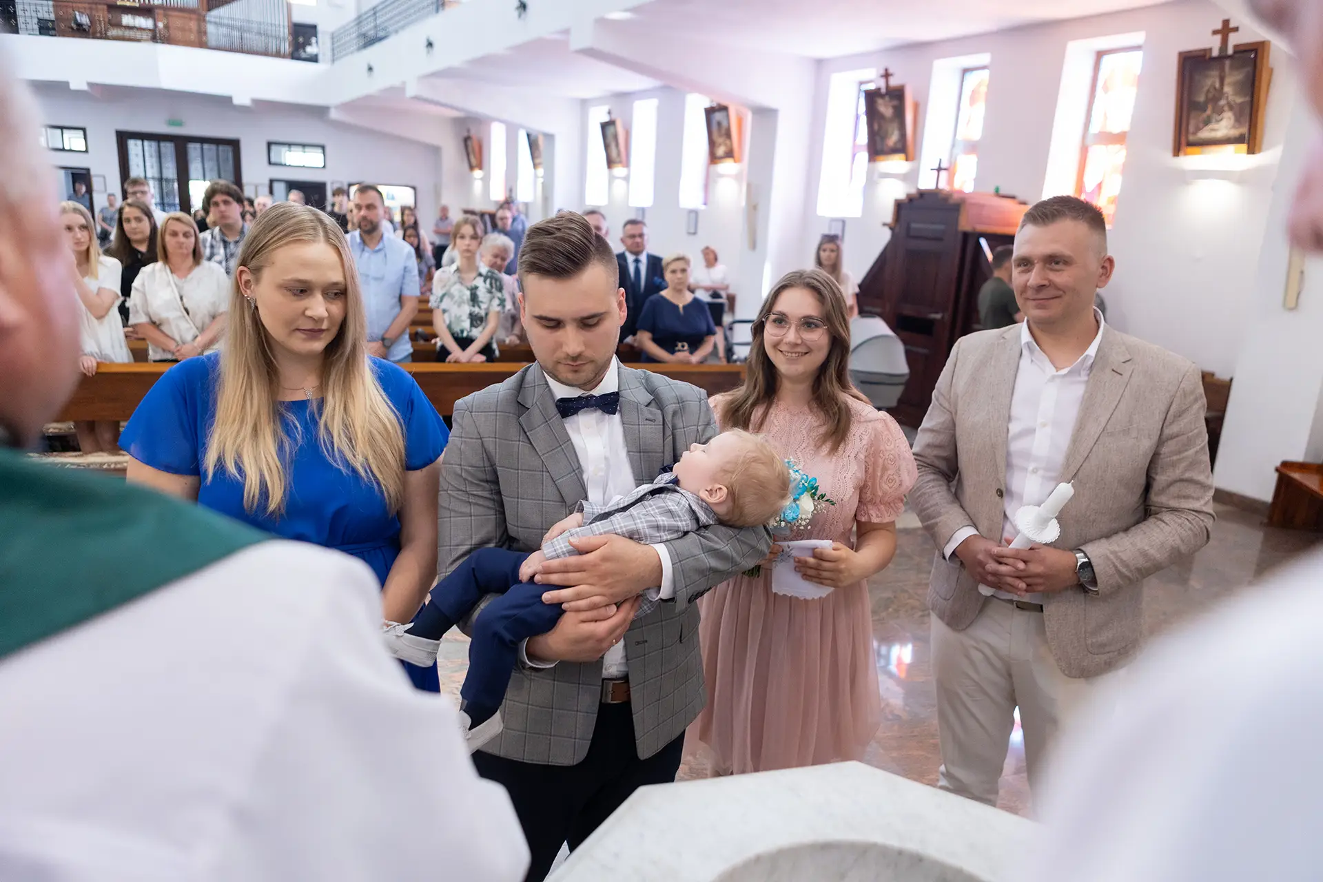Uroczystość w kościele: Dzięki uprawnieniom z Kurii pracuję dyskretnie podczas całego sakramentu. Po mszy robimy zdjęcie grupowe oraz ujęcia indywidualne przy ołtarzu.