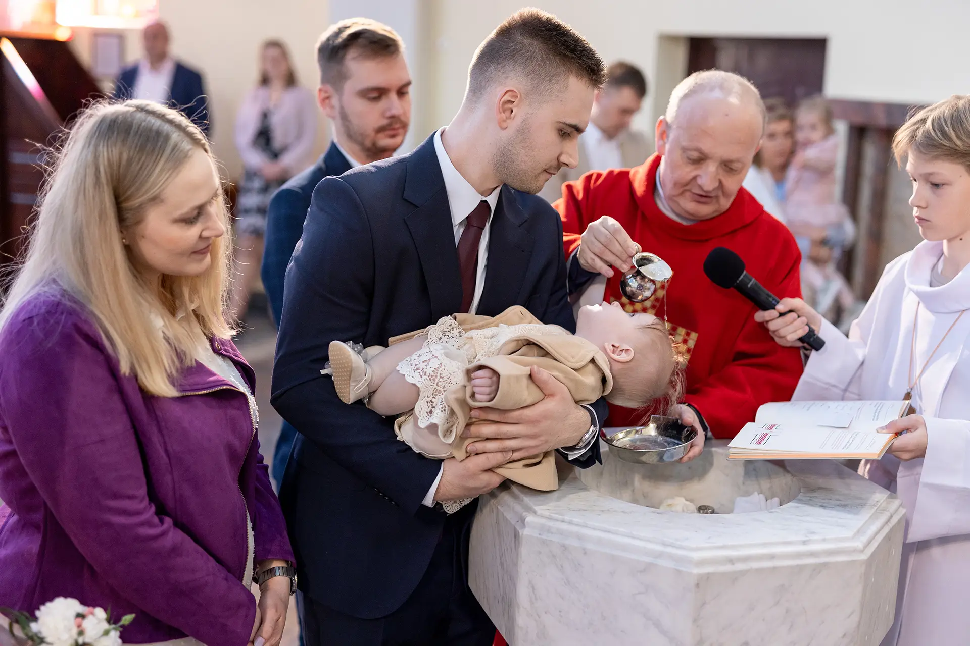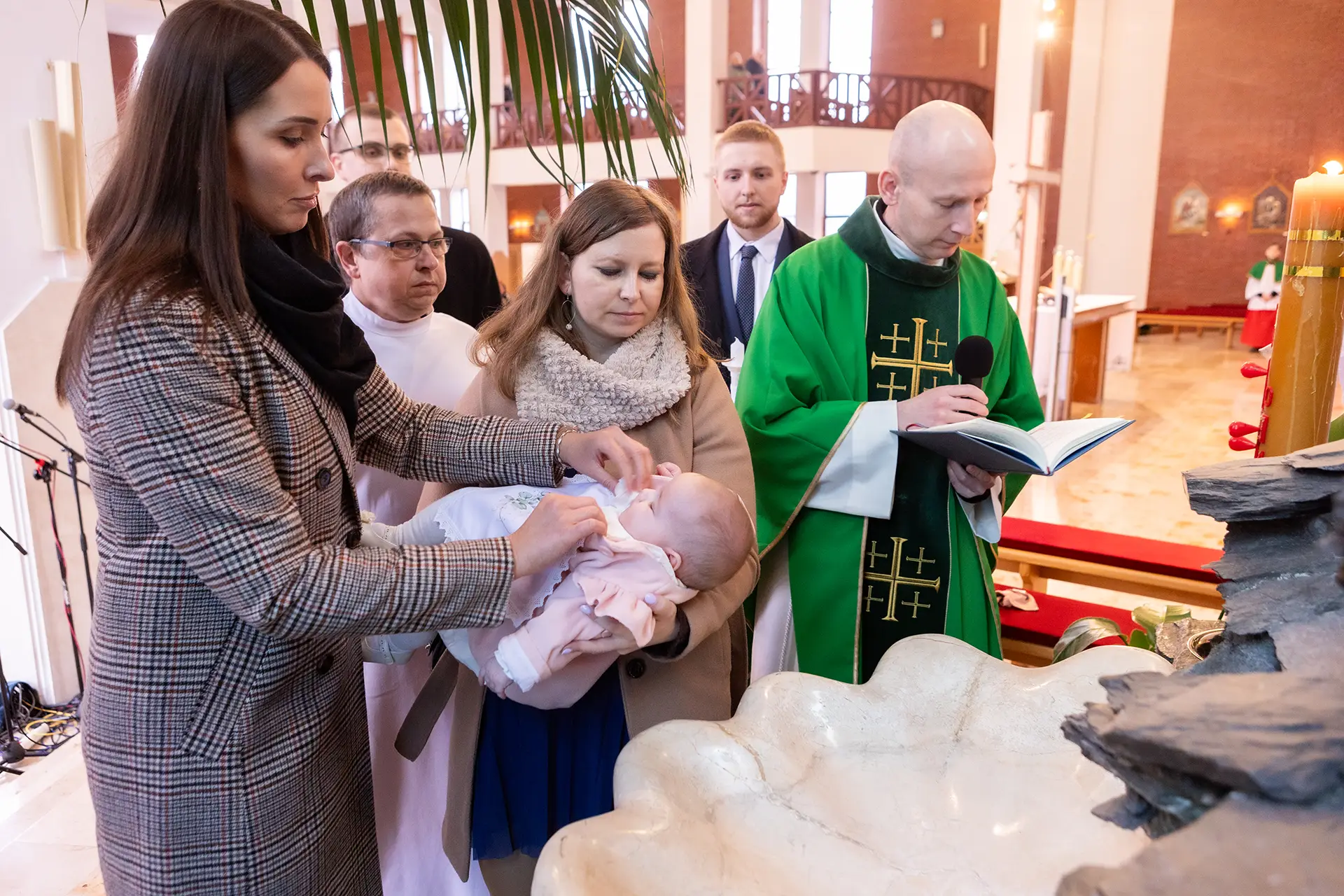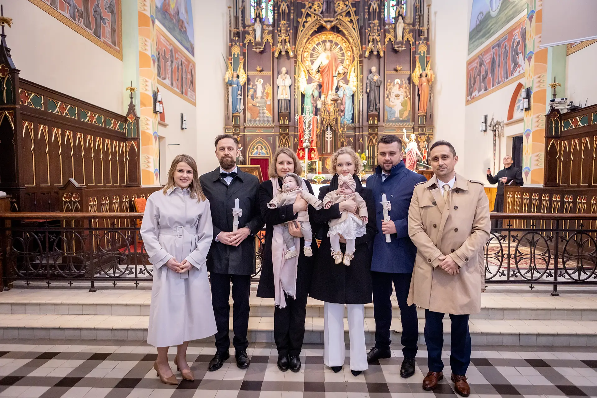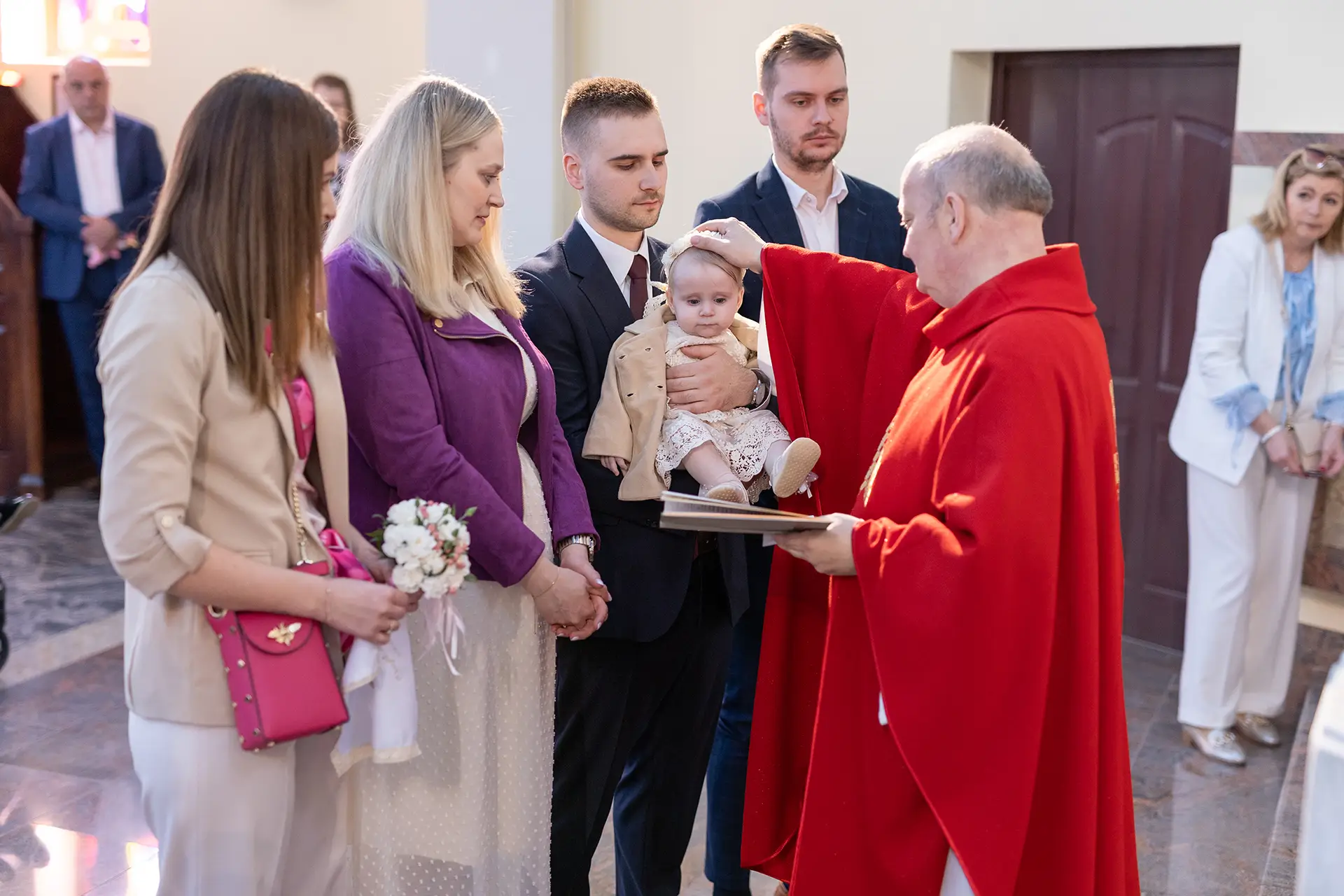 Uroczystość w kościele: Dzięki uprawnieniom z Kurii pracuję dyskretnie podczas całego sakramentu. Po mszy robimy zdjęcie grupowe oraz ujęcia indywidualne przy ołtarzu.