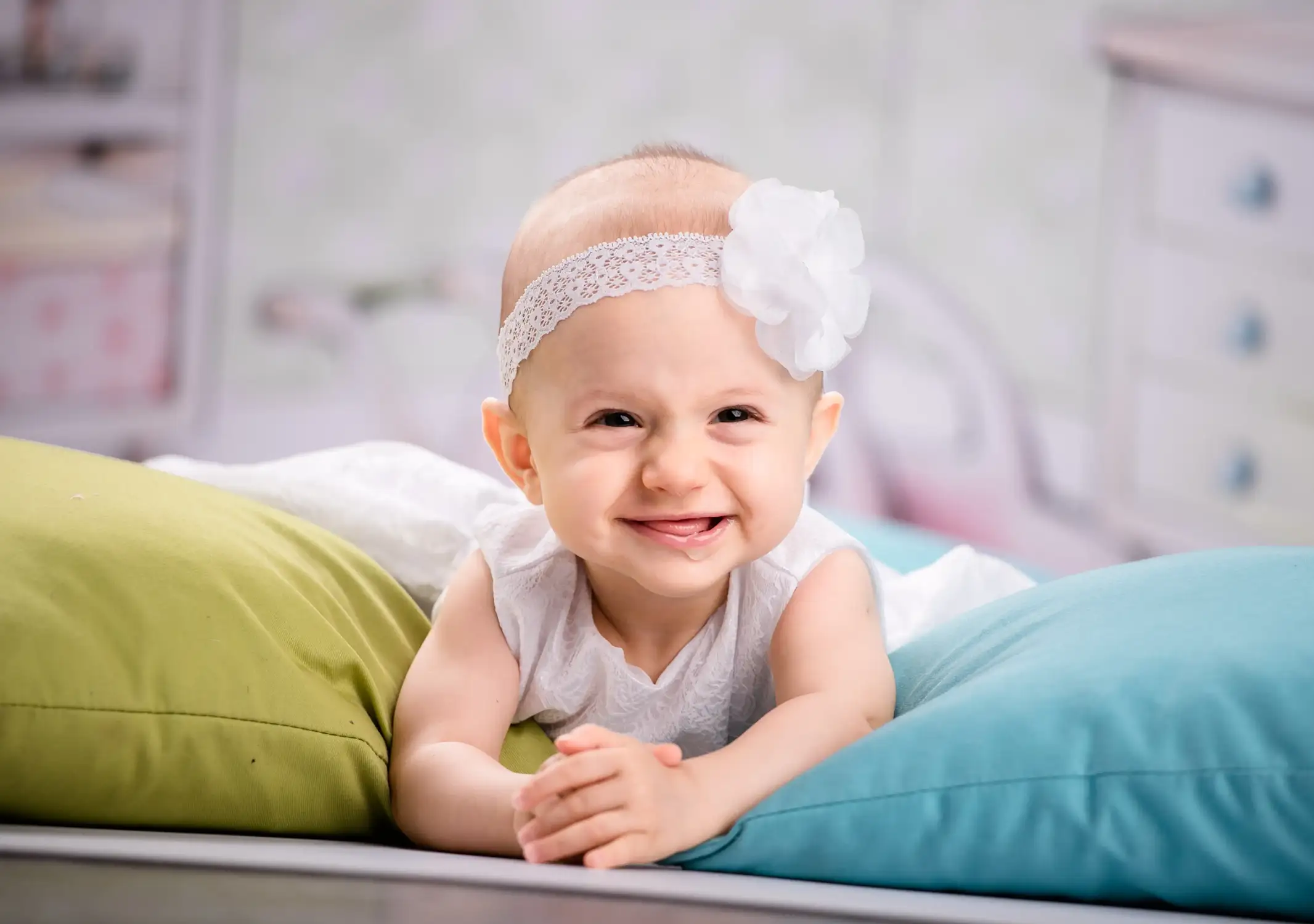 Dla najmłodszych dzieci, które jeszcze nie siedzą samodzielnie ani nie chodzą, sesja w moim studiu jest najbezpieczniejszą i najwygodniejszą alternatywą.