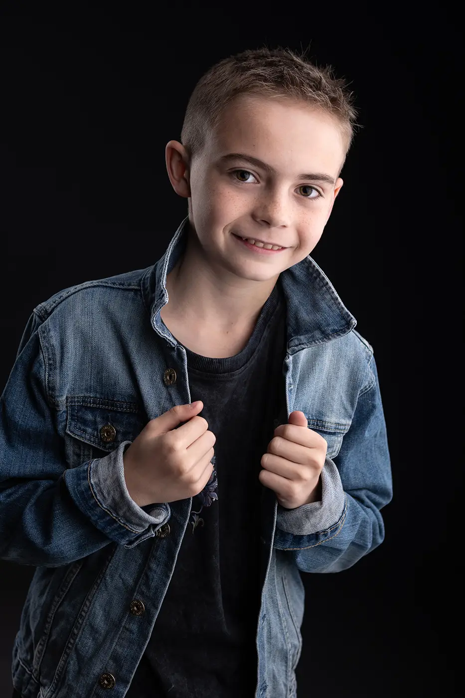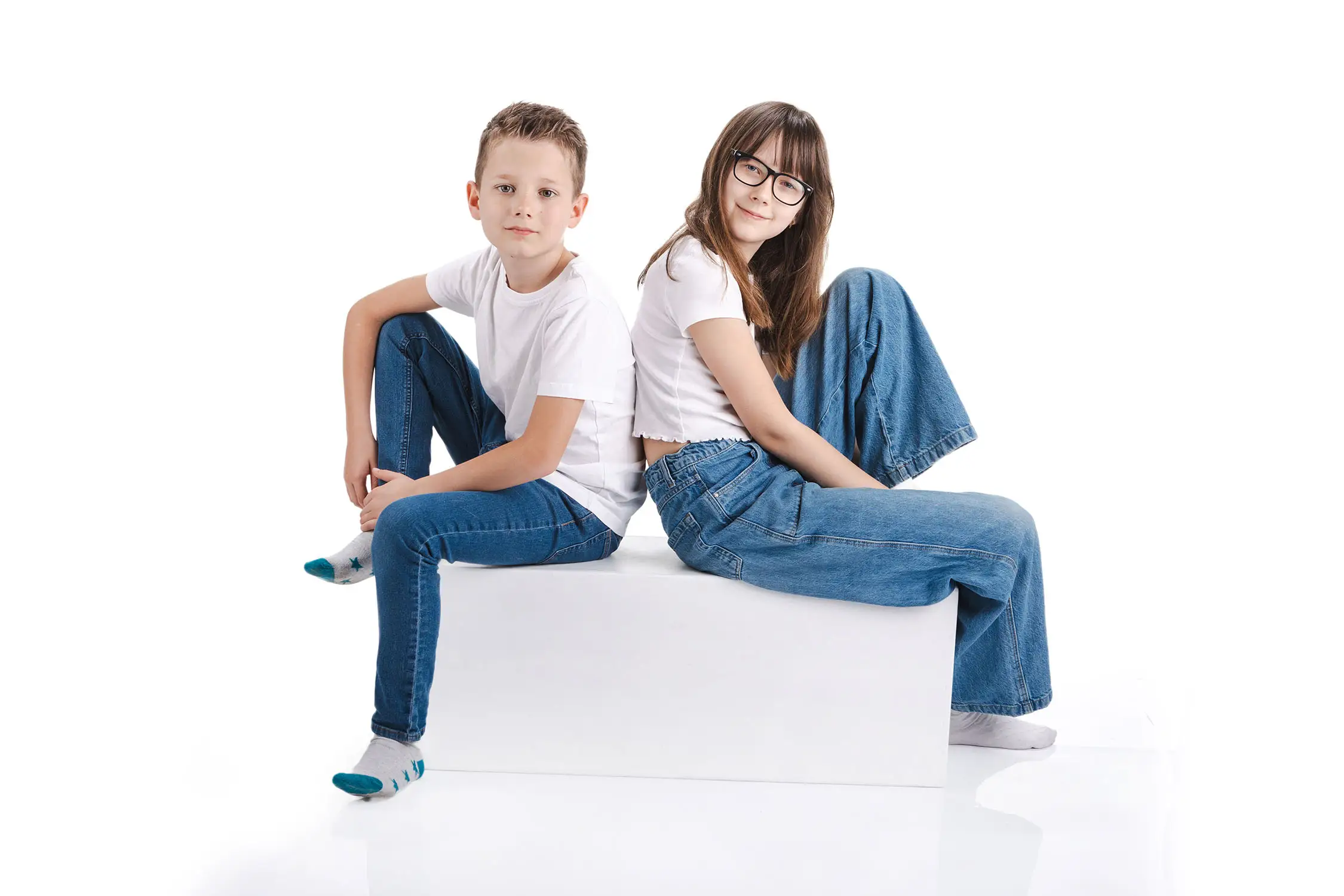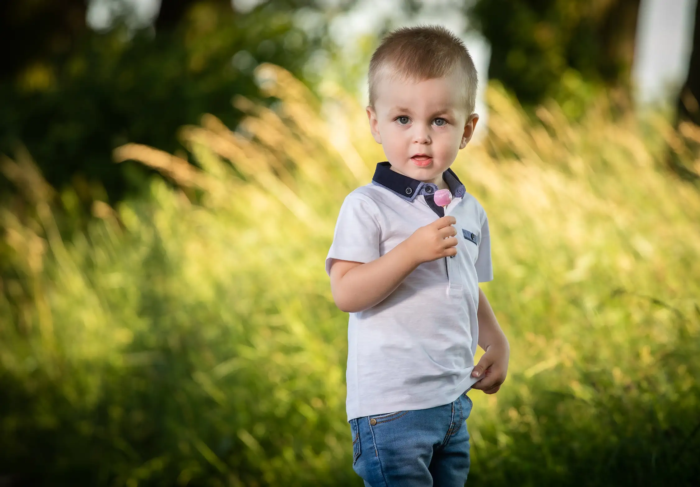 Jeśli chodzi o ubiór, najlepiej sprawdzają się proste, stonowane kolory bez dużych napisów – dzięki temu to twarz i emocje dziecka pozostaną na pierwszym planie.
