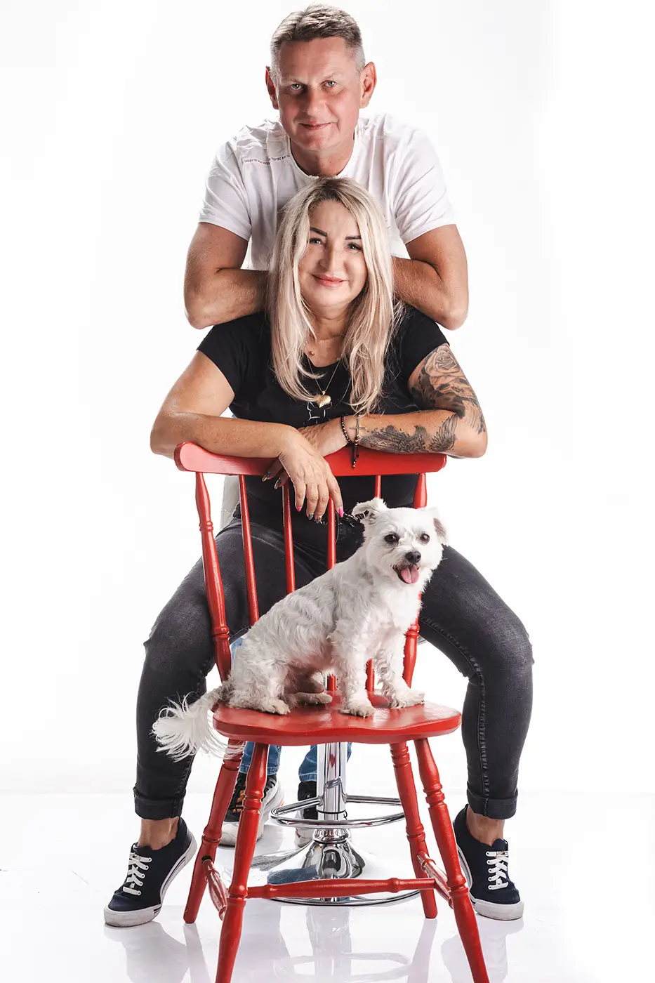 Najchętniej pracuję na jednokolorowych tłach – bieli, czerni, błękitach czy głębokiej zieleni – bo wierzę, że to Wy i Wasze relacje są najważniejszym elementem kadru.